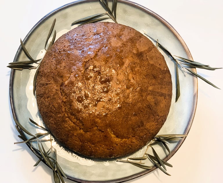 While the cake is baking, heat the lemon juice, honey or sugar, and water in a small saucepan