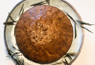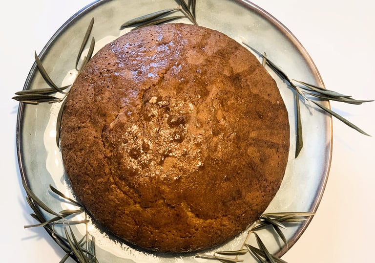 Um delicioso Brownie feito com azeite e nozes, coberto com uma suave cobertura de cacau.